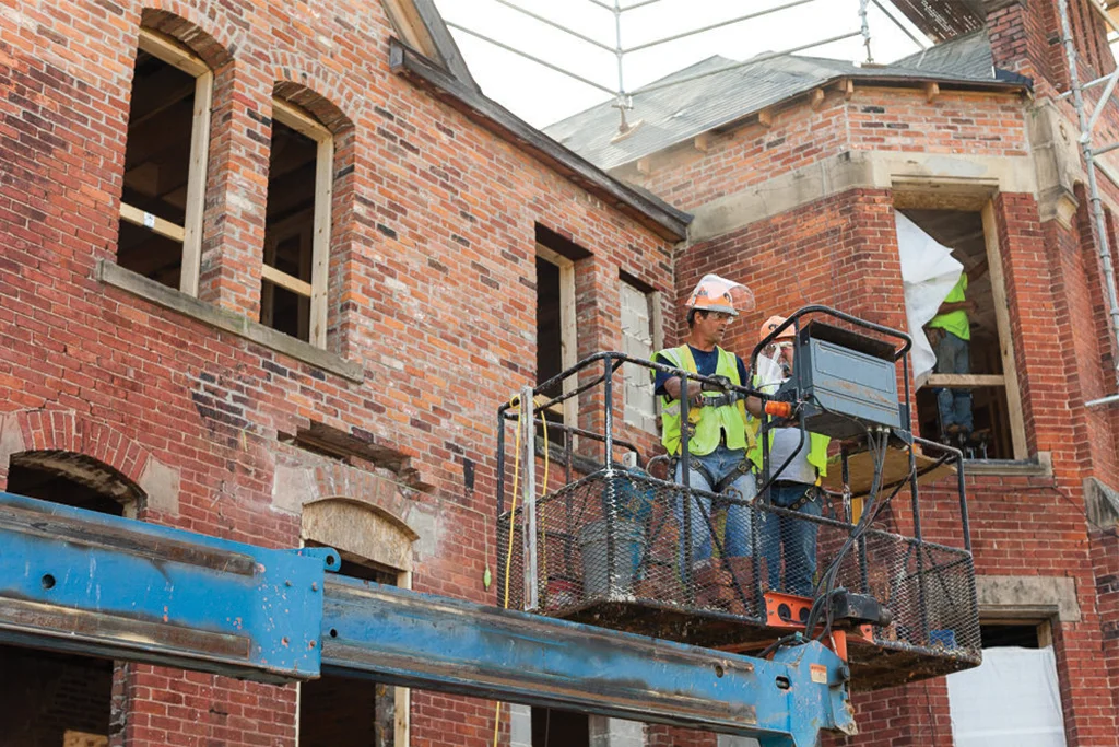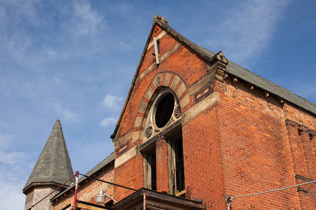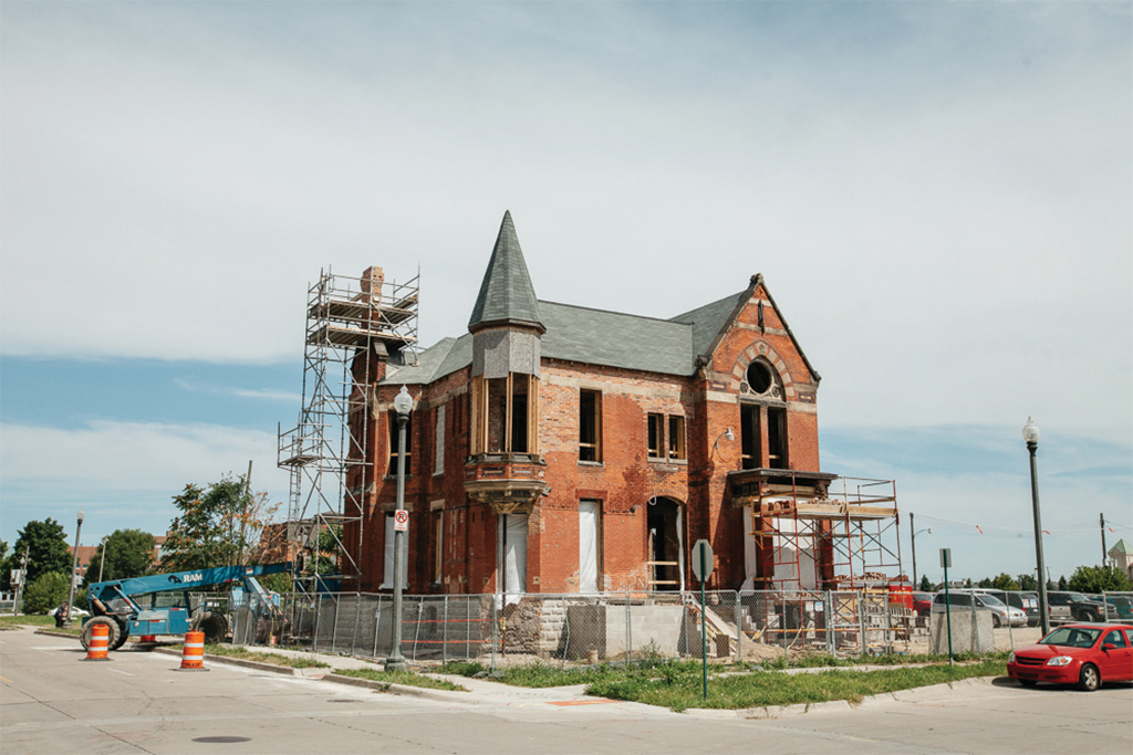 After decades of natural decay, the Ransom Gillis House at the corner of John R St. and Alfred St. in Detroit's historic Brush Park neighborhood is receiving a complete restoration. Built in 1876 in a Venetian Gothic style by Henry Brush and George Mason for a dry goods merchant, the house stands as one of the last remaining architectural foundations of Brush Park's former density of decadent Victorian-style mansions. Through the development efforts of Bedrock Real Estate Services, the house will become the cornerstone for a new mixed-scale urban residential neighborhood.